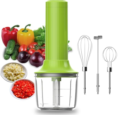 4-in-1 Cordless Hand Mixer with Whisk and Forther Wand,Electric Whisk, Milk Frother, Handheld Frother, hisker, Stirrers Electric,Coffee Frother,Food Chopper, Baby Food Maker,4-Speed, 10Oz