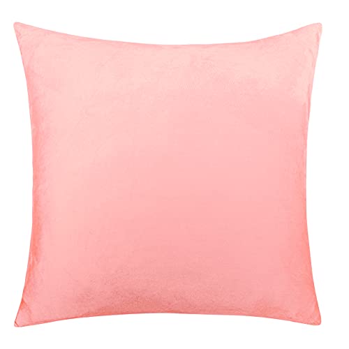 NTBAY Zippered Velvet Square Throw Pillow Cover, Super Soft and Luxury Decorative Euro Pillowcase, 26x26 Inches, Light Pink