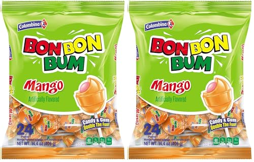 Colombina Bon Bon Bum Lollipops Mango Flavor, 24 Count (Pack of 2)
