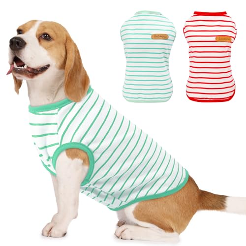 Preferhouse Dog Tee Shirts for Large Dogs 2 Pack, L Dog Sleeveless Striped Vests Dog Pullover T-Shirts Lightweight Puppy Kitten Tank Top Cat Tee for Schnauzer, RedGreen-L