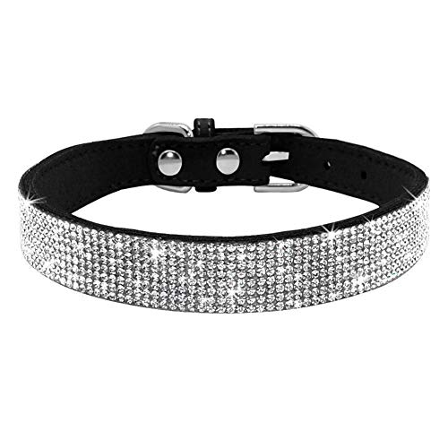 Pimaodog XS Dog Collar Cute Dazzling Sparkling Elegant Fancy Soft Suede Leather Bling Rhinestone Crystal Jeweled Small Pet Cat Dog Puppy Collar Dog Leash Combo Set (L, Black)