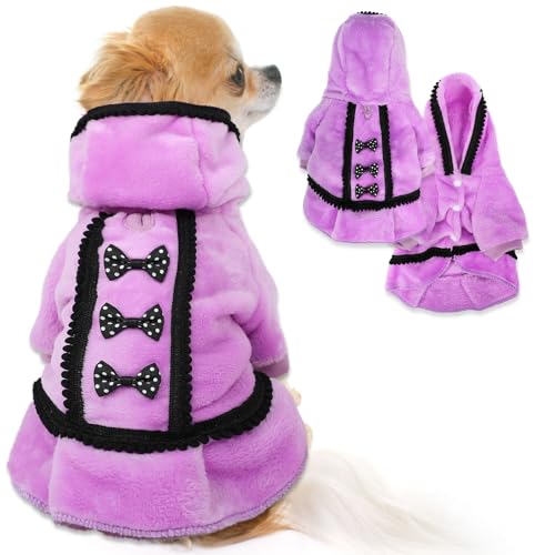 Winter Dog Dress for Small Dogs Girl Puppy Sweater Dog Sweaters Fleece Warm Puppy Dresses with Leash Hole Cute Pink Clothes Bowtie Chihuahua Sweaters Pet Doggie Oufit (Purple, XX-Small)