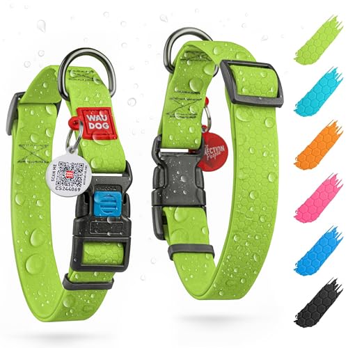 WAUDOG Waterproof Dog Collar - Adjustable for Large Dogs, Small and Medium Dogs - Heavy Duty Collars with Durable Metal Clasp and QR Tag - Boy & Girl