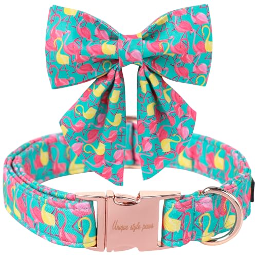 Unique Style Paws Dog Collar with Bowtie, Cute Flamingo Dog Collars Adjustable Puppy Collar for Small,Medium,Large Dogs