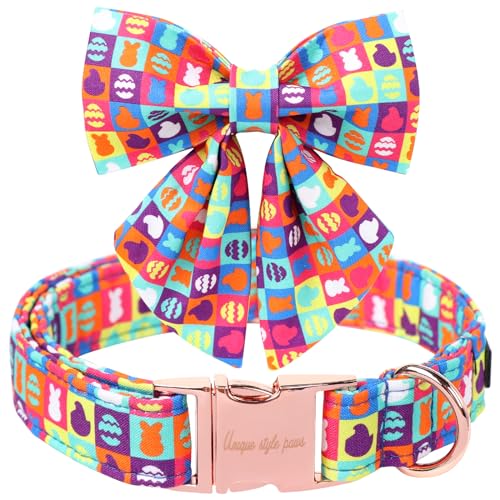 Unique Style Paws Easter Dog Collar with Bow Colorful Egg Dog Collar Bowtie Collar for Large Medium Small Dogs