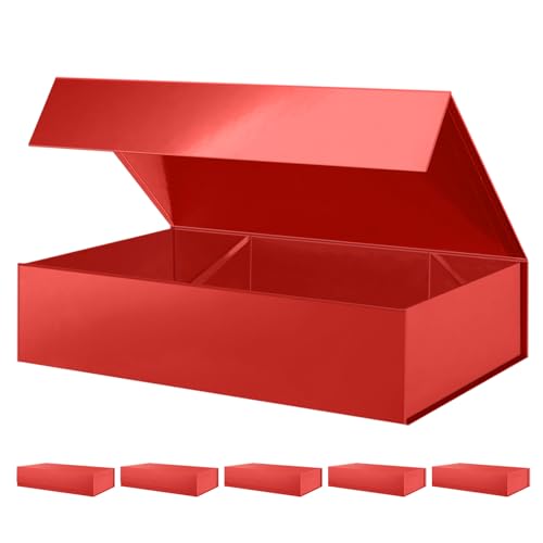 PACKHOME 6 Extra Large Gift Boxes 17.5x11.3x4.3 Inches, Sturdy Shirt Boxes with Magnetic Lids for Clothes and Large Gifts (Glossy Red)