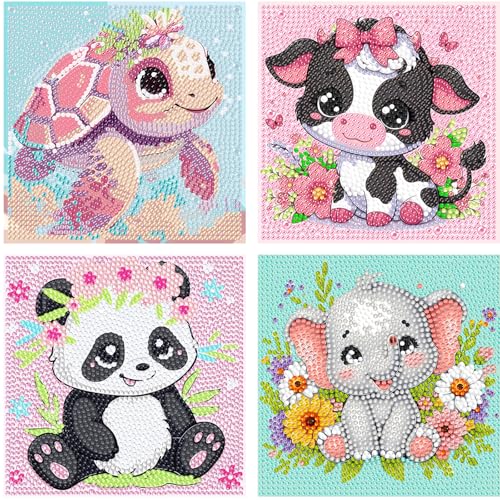 WEMEON 4 Pack Diamond Art Kits for Kids- Diamond Painting Crafts for Kids Ages 4-8-12, Diamond Art Painting Birthday Gifts for Girls and Boys(6x6inch)