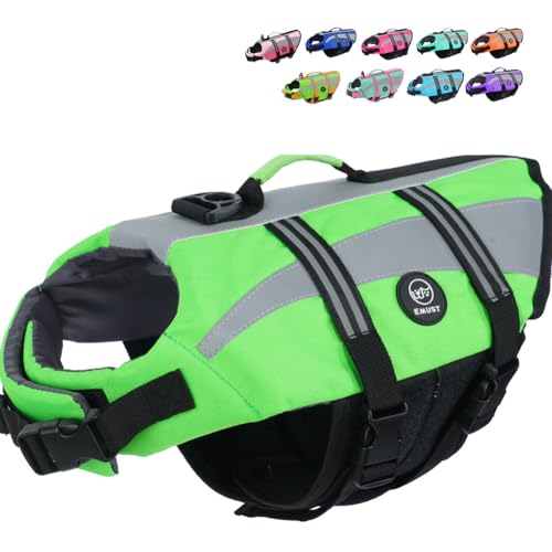 EMUST Dog Life Vests, Adjustable Pet Life Jackets for Small Dogs with Enhanced Buoyancy, Small Dog Flotation Vest with Durable Rescue Handle, Green,XS