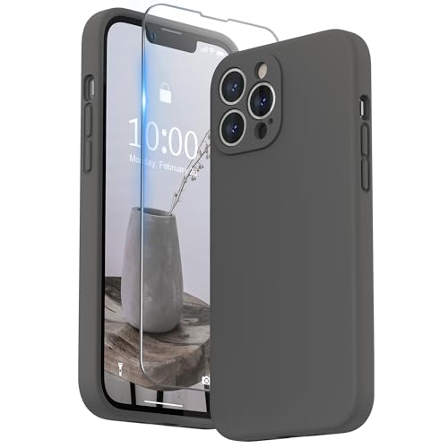 SURPHY Compatible with iPhone 13 Pro Max Case with Screen Protector, (Camera Protection + Soft Microfiber Lining) Liquid Silicone Phone Case 6.7 inch 2021, Clay