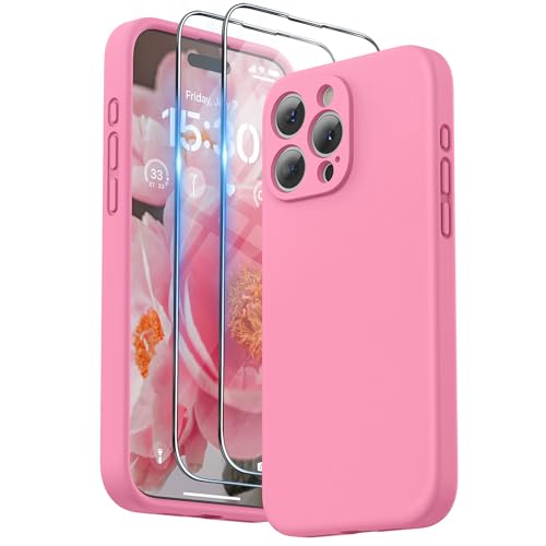 SURPHY Designed for iPhone 15 Pro Max Case with Screen Protector and Lanyard, Phone Strap and Liquid Silicone Phone Case (Camera Protective & Soft Microfiber Lining) 6.7 inch 2023, Pink