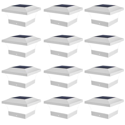 T-SUN Solar Post Cap Lights, Waterproof Outdoor Solar Powered Deck Fence Post Lights for 4 X 4 Wooden/Vinyl Posts, 6000K Cool White Lighting Decor for Deck, Patio, Garden, Porch, Fence(White -12 Pack)