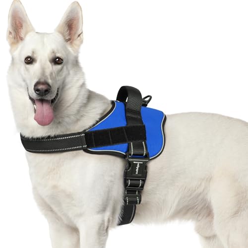 rabbitgoo Dog Harness for Extra Large Dogs, No Pull No Choke Pet Vest, Easy Wearing with One Buckle, Reflective, Adjustable Pet Harness with Molle for Walking, Training, Blue, XL