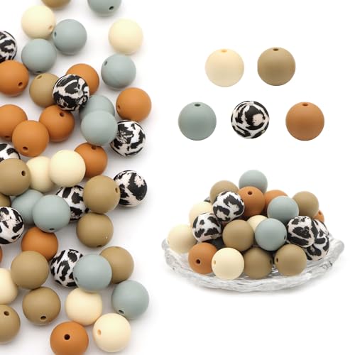 David Accessories Silicone Beads 15mm Bulk Round Beads for Keychain Pens Lanyards Bracelet Necklace Jewelry Making DIY Craft 50Pcs (W)