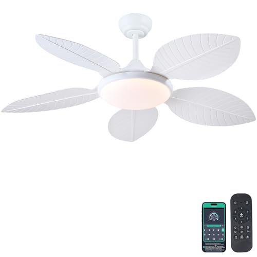 Wiviniya Ceiling Fans with Lights and Remote/APP Control, 48 Inch Tropical Ceiling Fan for Bedroom Living Room, Outdoor Palm Leaf Ceiling Fan for Patios Porch, Dimmable, 6 Speeds, Reversible, White