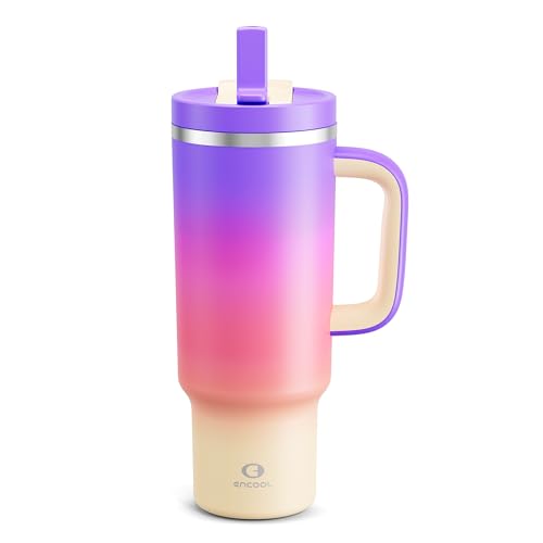 40 oz Tumbler with Handle and Straw: Stainless Steel Insulated Tumbler Keeps Cold for 24 Hours, Leakproof Travel Cup Fits in Cup Holder and BPA-Free, Peach Dream