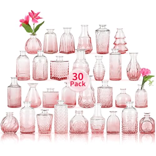 Glass Bud Vases in Bulk Set of 30 Pcs,Small Glass Vases for Flowers as Wedding Centerpieces for Tables,Clear Flower Vases Suitble for Wedding Decorations,Home Decor (Light Rose-red, 30 pcs)