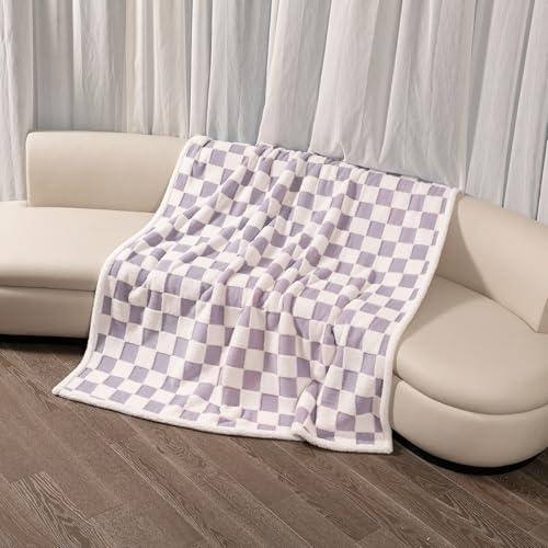 Maidewow Waterproof Pet Blanket,Dog Bed Covers Couch Sofa Stylish Jacquard Pets Throw Blankets for Puppy Cats Washable Reversible Furniture Protection Covers (Purple Check,S)