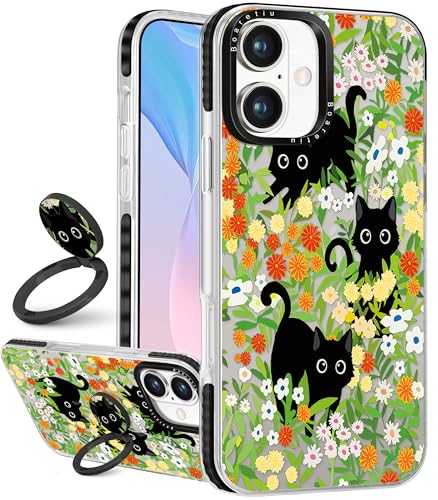Boaretiu Cute Kawaii for iPhone 16 Plus Case with Stand - Fashion Cool 360° Rotate Ring Holder Kickstand Cat Flower Design for Women Girls Boys Teens Girly for iPhone 16 Plus Phone Case