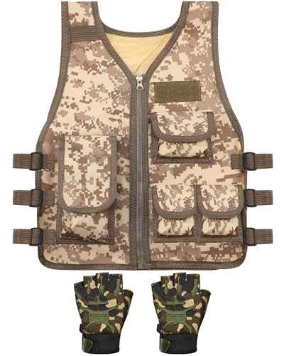 SATINIOR Kids Tactical Vest Army Combat Vest Outdoor with Half Finger Fingerless Short Gloves Breathable (Trendy Style)