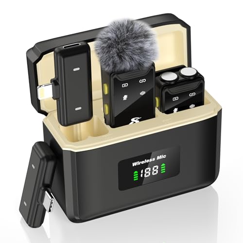 PQRQP Mini Microphone for iPhone, Android(Lightning/USB C), 80 H Battery Life, Hi-Fi Audio, 48kHz/24-bit, Wireless Microphones with Noise Cancellation for Video Recording, Streaming, 164ft Range