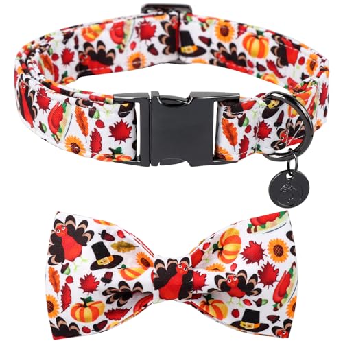 DOGWONG Thanksgiving Acorn Dog Collar with Bowtie, Fall Turkey Dog Collar Durable Soft Cotton Pumpkin Pet Dog Collars for Small Medium Large Dogs