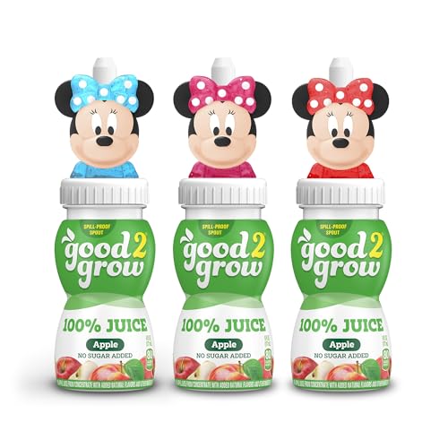 good2grow Apple Juice - 100% Juice Drinks for Kids, Fruit Juice No Sugar Added, 6 Fl Oz Juice Bottles with Spill-Proof Disney's Minnie Mouse Character Tops (3 Pack)