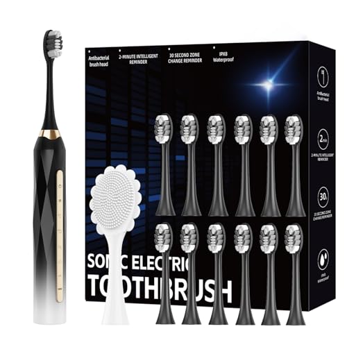 Sonic Electric Toothbrush Set, 12 Brush Heads (4 Years Use) and 1 Face Massage Brush Head, 42000 VPM Motor, 5 Modes and 2 mins Timer, One Charge for 90 Days Whitening Toothbrush for Adults and Kids
