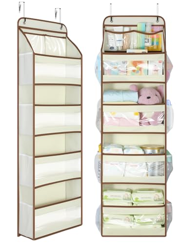 Yecaye 5 Tier 1Pc Over the Door Organizer, Swing-proof Door Organizer Hanging with Clear PVC Windows, Behind the Door Storage for Bedroom Nursery Closet Laundry Pantry Bathroom, Beige