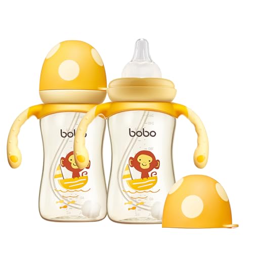 YOHKOH Natural PPSU Baby Bottle with Natural Response Nipple, Newborn Anti-Colic Baby Bottles with Handle, Wide Neck Mushroom Cap Baby Bottle (8.8oz (Pack of 2), Yellow)