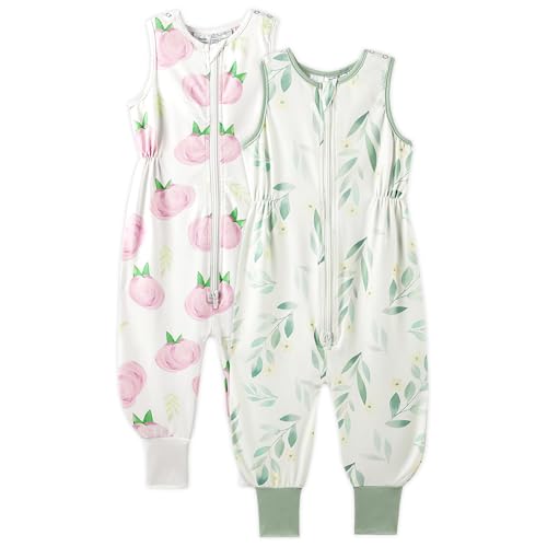 TotAha Toddler Sleep Sack with Feet 12 Months-2t for Girls,TOG 0.5, Light and Soft Baby Wearable Blanket for Walkers, 2 Pack, Buds & Greenleaf