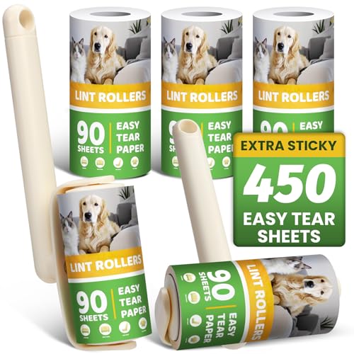 FLRJEB Lint Roller 2-in-1 Rotatable Handle Pet Hair Remover for Laundry Dog Hair, Cat Hair, Animal Fur, Fuzz Extra Sticky Roller for Couch, Clothes, Furniture and Carpet (5 Pack)