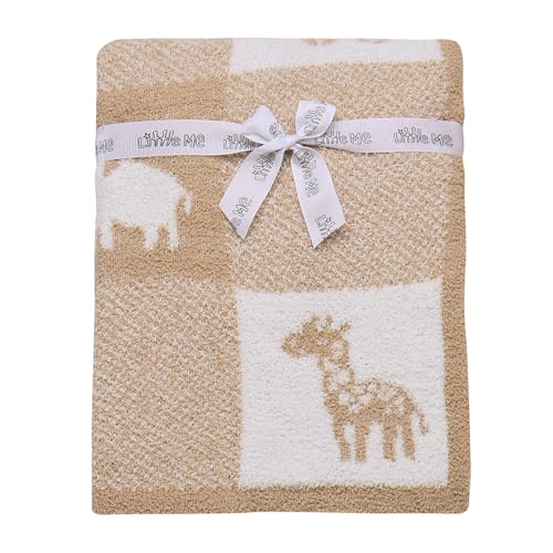 Soft Chenille Jacquard Baby Blanket, Jungle Animals, 30 in. x 40 in., Tan and Beige Patchwork