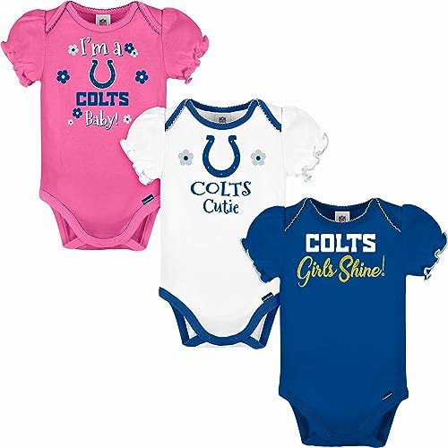 Gerber Baby Girl's Standard NFL 3 Pack Short Sleeve Onesie Bodysuit, Team Color, 18 Months