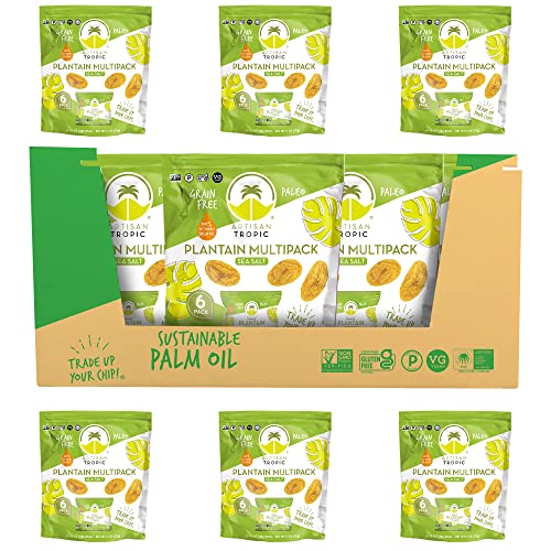ARTISAN TROPIC Plantain Strips – Vegan, Paleo, Gluten Free Chips - Individual Bags Healthy Snacks for School, Gym, Kids – Whole 30 Approved Foods Baked Banana Chips – Sea Salt (1 Oz - 36 Pack)