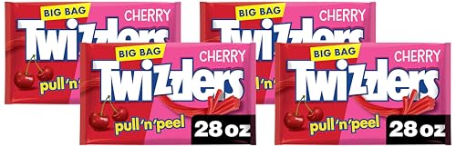 TWIZZLERS PULL 'N' PEEL Cherry Flavored Licorice Style, Low Fat Candy Big Bag, 28 oz (Pack of 4)