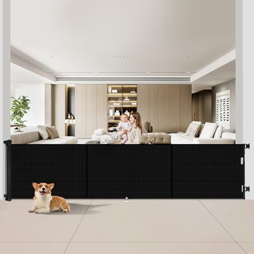 Miumoon 200 inch Retractable Baby Gates 48 inch Tall, Retractable Gate with Reinforced Strip Design to Prevent Crawling Through, 16 FT Outdoor Retractable Gates, Extra Wide Retractable Gate for Garage