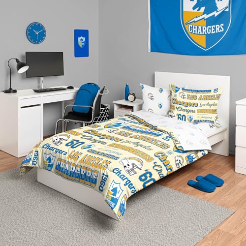 FOCO Los Angeles Chargers NFL Retro Bed in a Bag Comforter Bedding 5 Piece Twin Set
