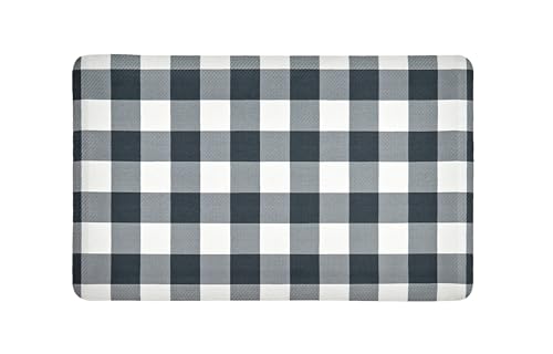 Anti Fatigue Kitchen Rugs Farmhouse Kitchen Mats for Floor,Cushioned Non-Slip Waterproof Ergonomic Comfort Rug Standing Mat for Kitchen,Floor,Home,Office,Sink,Laundry,Plaid Black,17.3"x 28"