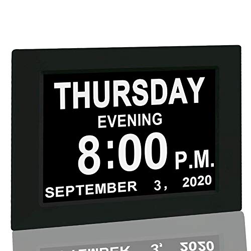 JALL 【New 2024】 Digital Calendar Alarm Day Clock - with 8" Large Screen Display, am pm, Multiple Alarms, for Impaired Vision People, The Aged Seniors, The Dementia, for Desk, Wall Mounted, Black