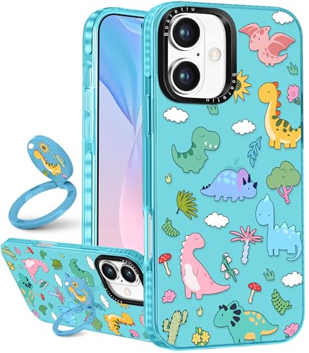 Boaretiu Cute Kawaii for iPhone 16 Plus Case with Stand - Fashion Cool 360° Rotate Ring Holder Kickstand Dinosaur Design for Women Girls Boys Teens Girly for iPhone 16 Plus Phone Case