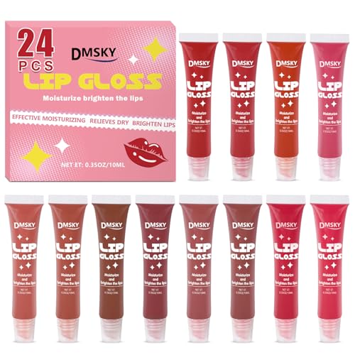 Dmsky 24 Pack Lip Gloss Set, 12 Colors Lip Oil for Dry Cracked Lips, Moisturizing Lip Balm Infused with Vitamin E for a Sheer Tint Of Color