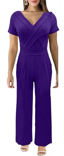 ZonJie Sexy Off Shoulder Jumpsuits for Women Elegant Dressy Short Sleeve Ruched Clubwear Plus Size Wide Leg Pants Rompers