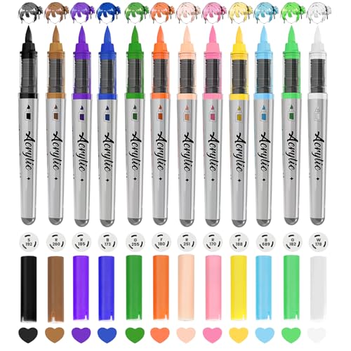 Acrylic Paint Markers Anime Color, 12 Colors Fabric Marker, Auto-Ink Paint Pens Markers, Brush Tip Marker for Rock Painting, Wood Glass Ceramic Canvas Stone DIY Crafts Making Art Supplies