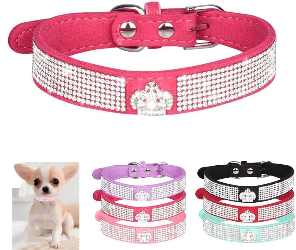 Serijoars Small Dog Collar with Rhinestone Crystal Diamond Colorful Bling Girl Puppy Cat Collars (XS, Hot Pink4)