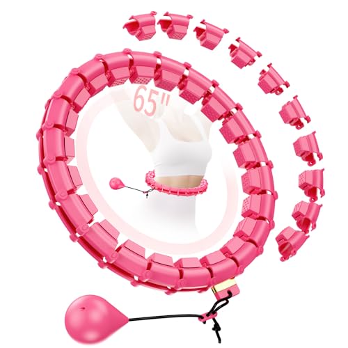 Skyrain Infinity Hoop Weighted Hula Hoop for Adults Weight Loss at Home, Fitness Hoop with 32 Detachable Knots, 65 Inch Plus Size, Exercise Hula Hoop for Women, Workout Equipment for Gifts (Rosy)