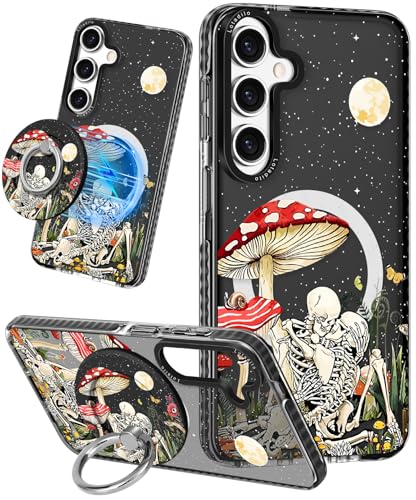 Lotadilo Cute Case for Samsung Galaxy S24 Plus for Women Girls - Funny Plant Skull Design Compatible with Magsafe Magnetic Ring Holder Kickstand Fashion TPU Phone Covers