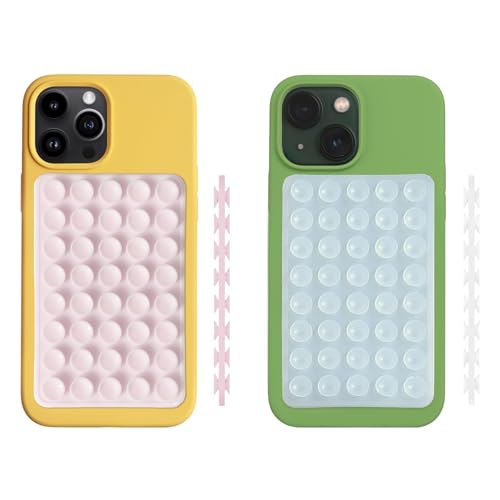 (2 Pack) Silicone Suction Cup Phone Case Mount Double Sided, Sticky Phone Grip with Higher Suction Power for Cell Phone, Hands-Free Phone Accessories for Selfies and Videos, Clear & Light Pink