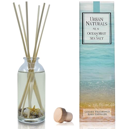 Urban Naturals Ocean Mist & Sea Salt Reed Diffuser Set | Made with Essential Oils & Real Botanicals | Decorative Air Freshener for Large Rooms | Beautiful Home Décor Makes a Great Gift