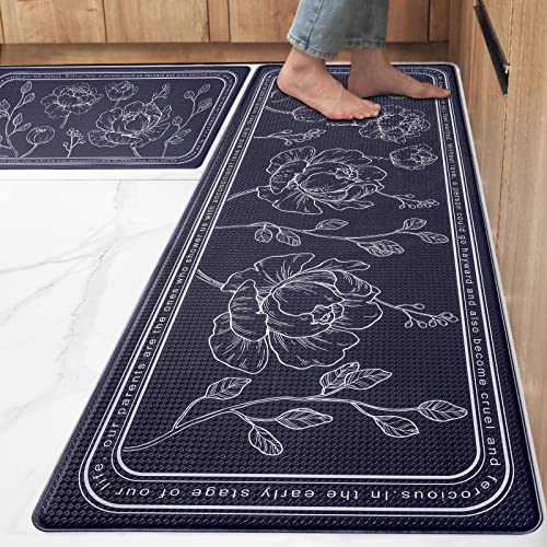 ROTTOGOON Kitchen Floor Mat Set of 2, Cushioned Anti Fatigue Kitchen Mat 17"x47"+17"x29", Non-Slip Waterproof Kitchen Rug, Premium PVC Comfort Kitchen Mats and Rugs for Kitchen, Office, Home, Laundry