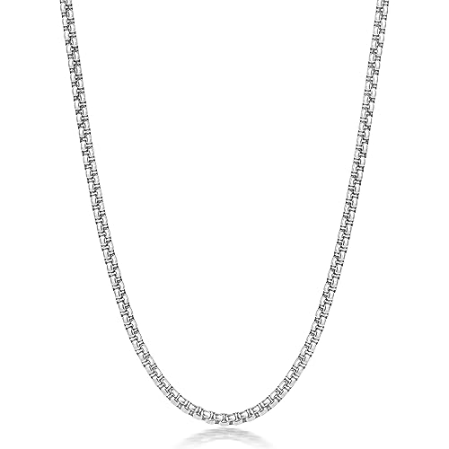 Fiusem Silver Tone Chain for Men, 5mm Stainless Steel Necklace for Men and Women, Box Chain 26 Inches